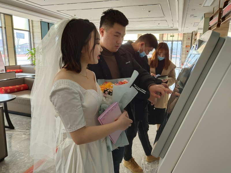 当天,该区婚姻登记处根据事先制定的3·14高峰结婚登记预案,全体工作人员提前至8:00到岗就位。常态化疫情防控的防疫岗上,防疫人员有序引导,做好测温、验码记录工作;咨询台岗位上,做好材料的初审和咨询接待工作;大厅导询岗位上,婚姻导询员做好自助终端机的指导操作和取号工作。为提高登记效能,该单位充分利用最新采购的两台婚姻登记自助服务终端机,登记耗时节约近60%;同时为有效分流,由原先的4个结婚登记窗口增至6个,极大提高了登记效率,节约了婚姻登记当事人的时间,现场登记未出现拥堵、等待的现象。